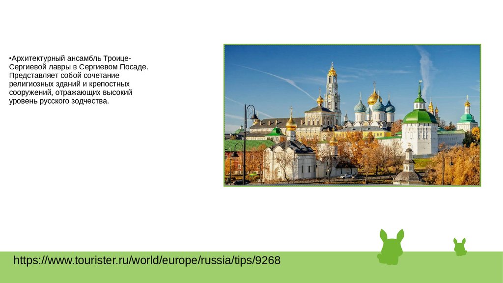 Архитектурный ансамбль ТроицеСергиевой лавры в Сергиевом Посаде.Представляет собой сочетание