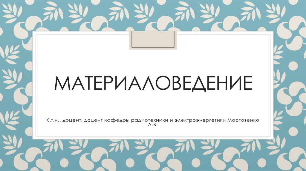 МАТЕРИАЛОВЕДЕНИЕК.т.н., доцент, доцент кафедры радиотехники и электроэнергетики Мостовенко