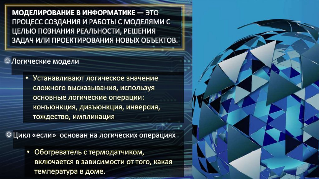 МОДЕЛИРОВАНИЕ В ИНФОРМАТИКЕ — ЭТОПРОЦЕСС СОЗДАНИЯ И РАБОТЫ С МОДЕЛЯМИ С