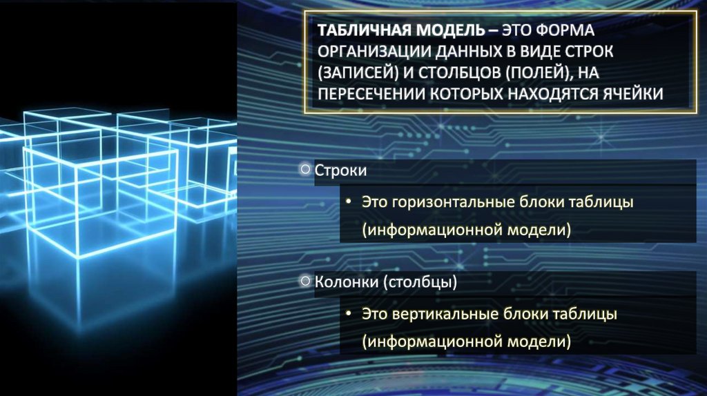 ТАБЛИЧНАЯ МОДЕЛЬ – ЭТО ФОРМАОРГАНИЗАЦИИ ДАННЫХ В ВИДЕ СТРОК