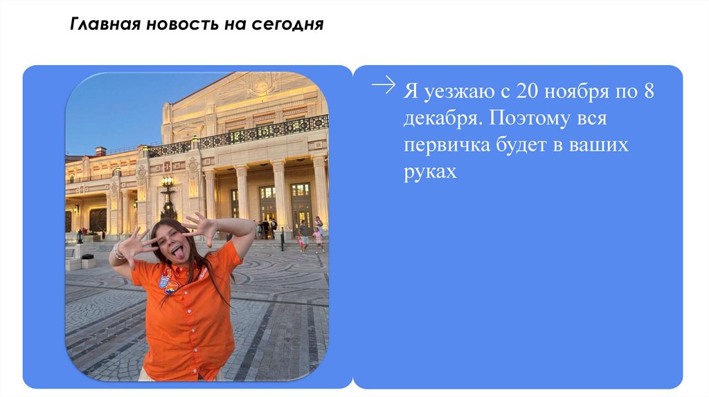 Главная новость на сегодняЯ уезжаю с 20 ноября по 8
