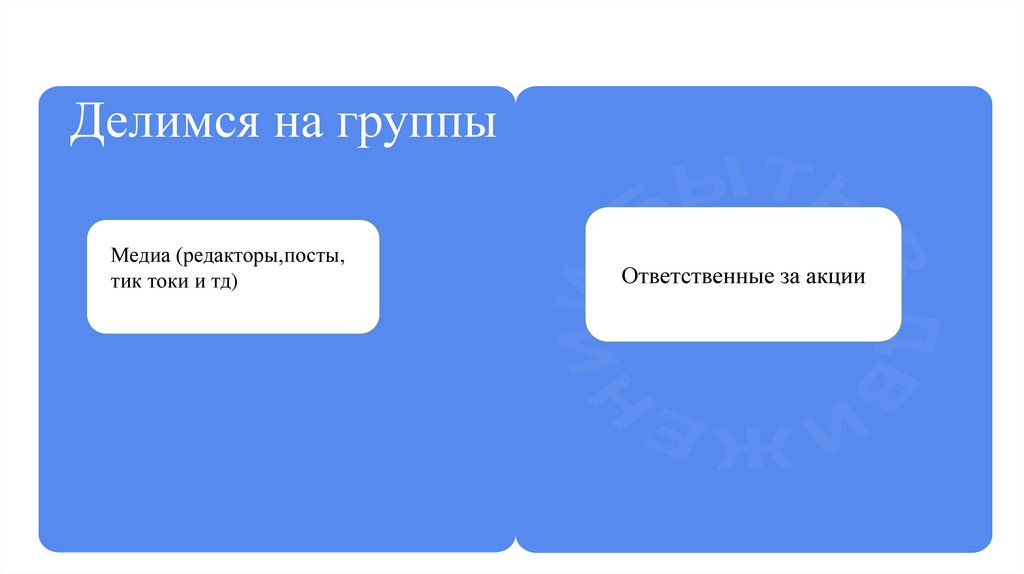Делимся на группыМедиа (редакторы,посты,