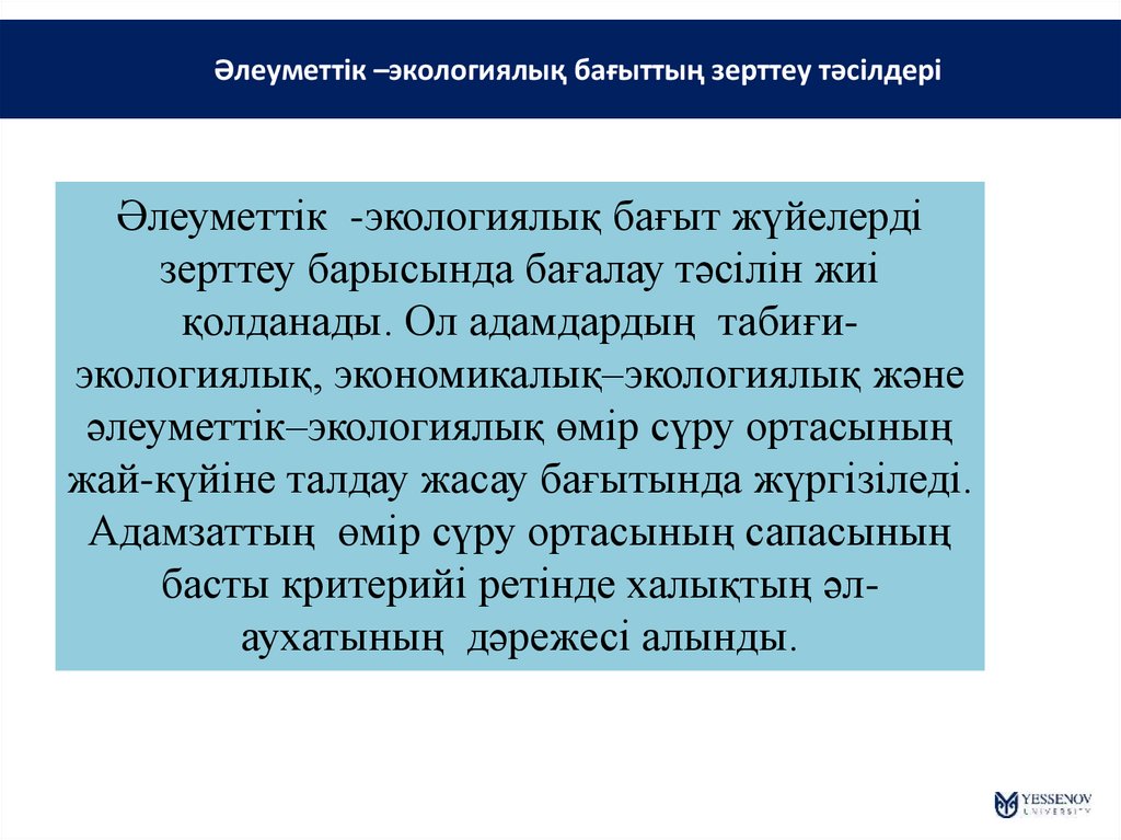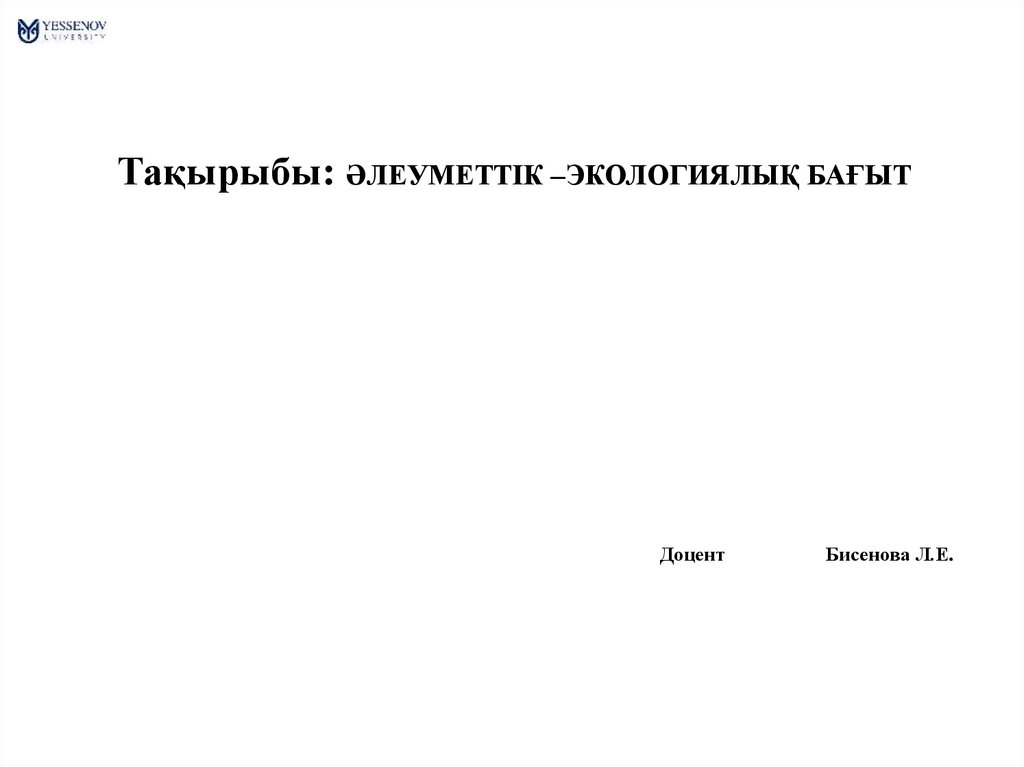Тақырыбы: ӘЛЕУМЕТТІК –ЭКОЛОГИЯЛЫҚ БАҒЫТДоцент