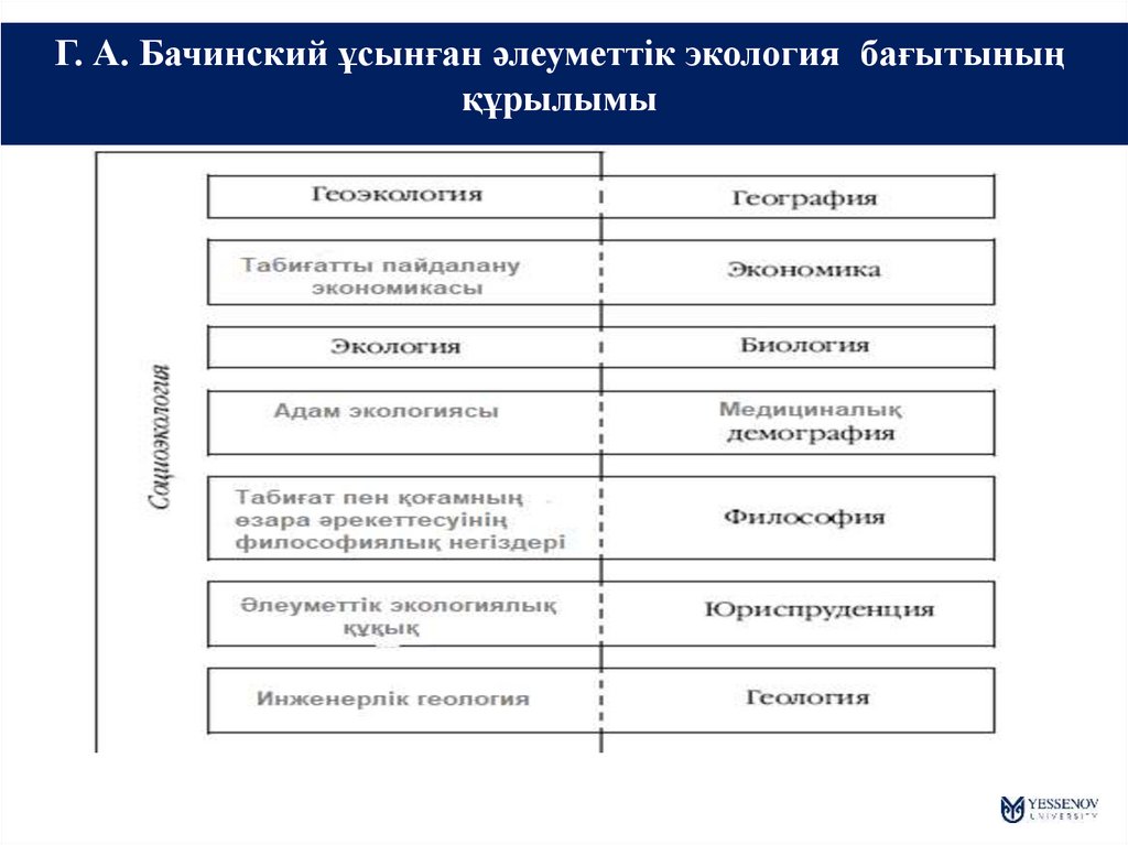 Г. А. Бачинский ұсынған әлеуметтік экология бағытыныңқұрылымы