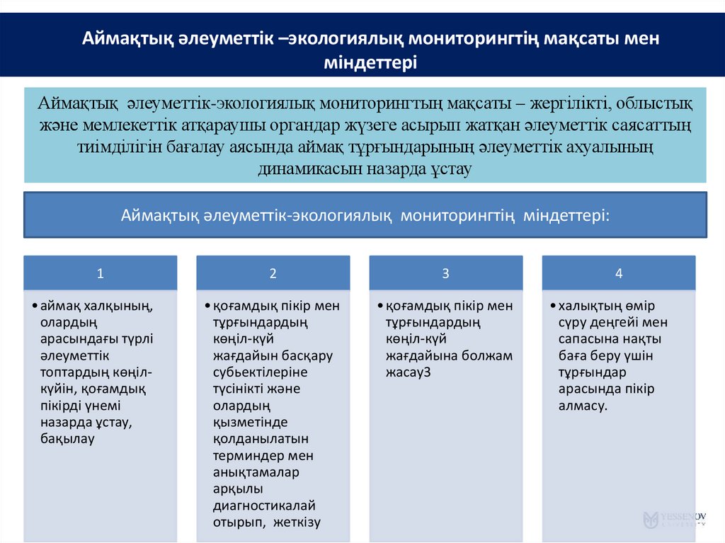 Аймақтық әлеуметтік-экологиялық мониторингтің міндеттері: