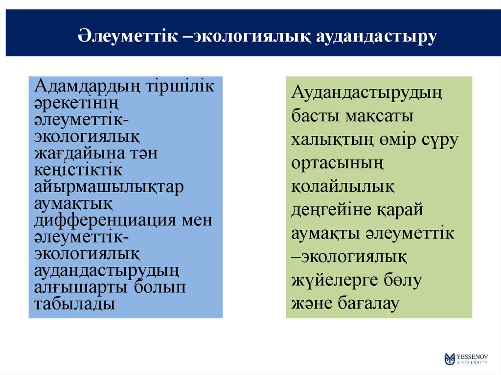 Әлеуметтік –экологиялық аудандастыруАдамдардың тіршілік