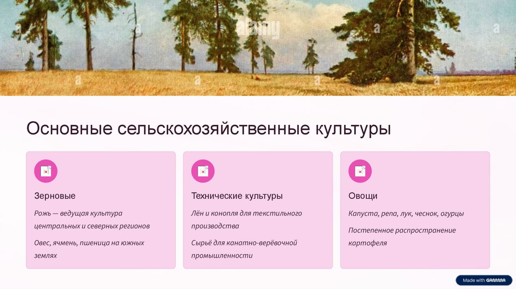 Основные сельскохозяйственные культурыЗерновые