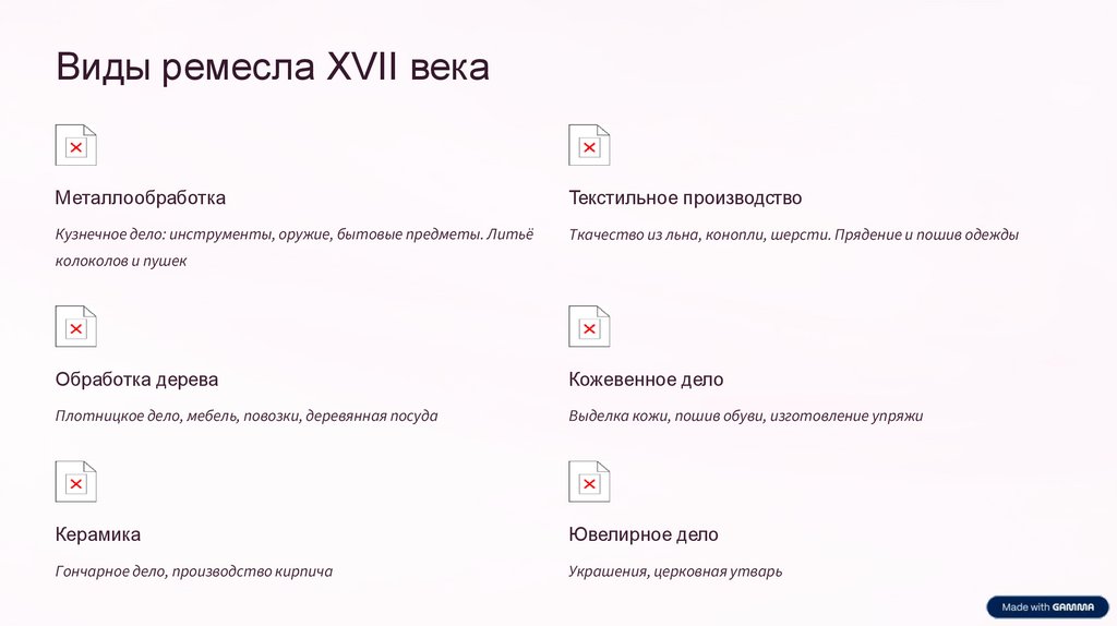 Виды ремесла XVII векаМеталлообработка