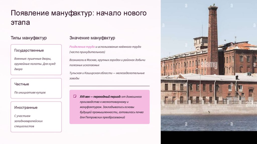 Появление мануфактур: начало новогоэтапа