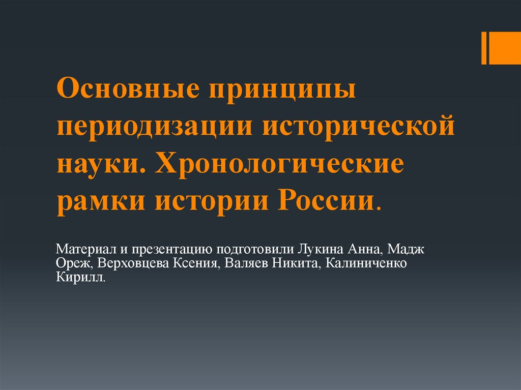 1. Основные принципы периодизации исторической науки. Хронологические рамки истории России.