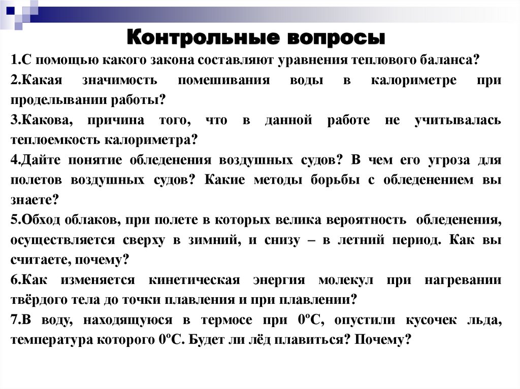 Контрольные вопросы1.С помощью какого закона составляют уравнения теплового баланса?