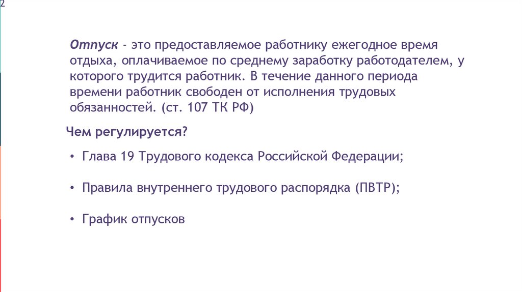 • Очередность отпусков устанавливается графиком отпусков. График отпусков формируется