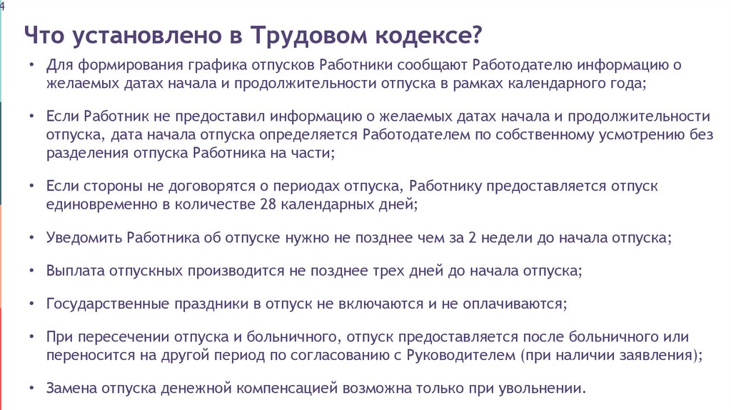 • Для формирования графика отпусков Работники сообщают Работодателю информацию о