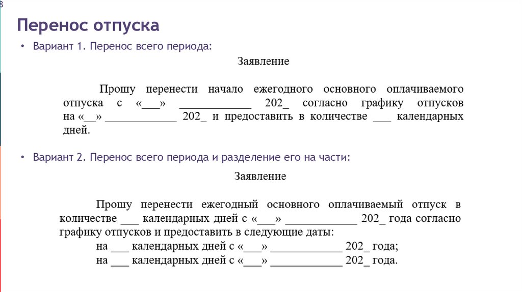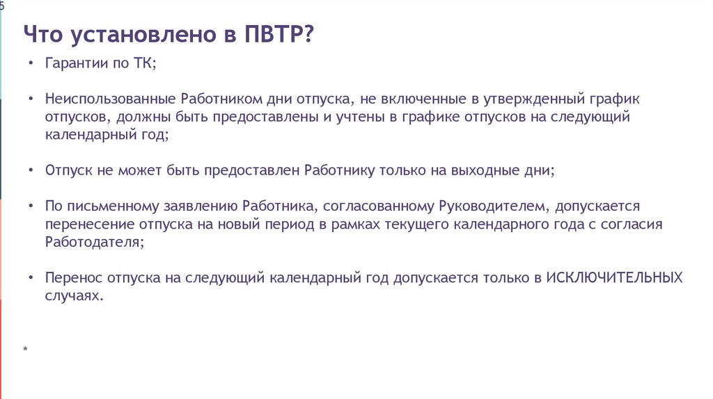 • Перенос отпуска на следующий календарный год допускается только в ИСКЛЮЧИТЕЛЬНЫХ