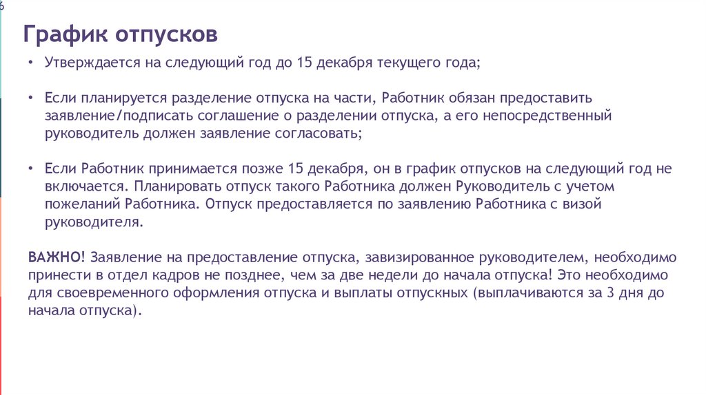 • Если планируется разделение отпуска на части, Работник обязан предоставить