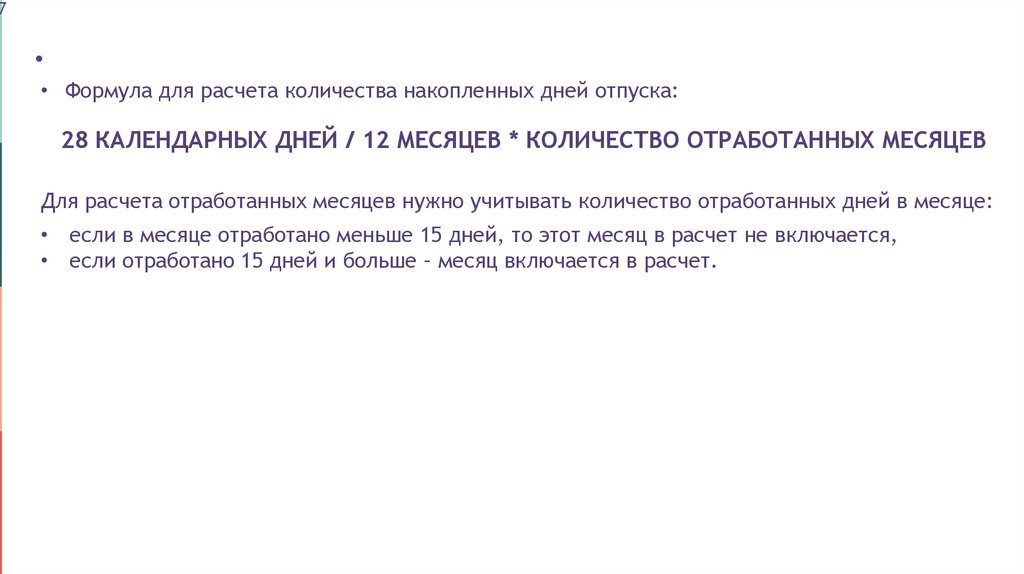 28 КАЛЕНДАРНЫХ ДНЕЙ / 12 МЕСЯЦЕВ * КОЛИЧЕСТВО ОТРАБОТАННЫХ МЕСЯЦЕВ