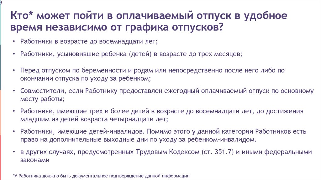 9Кто* может пойти в оплачиваемый отпуск в удобное