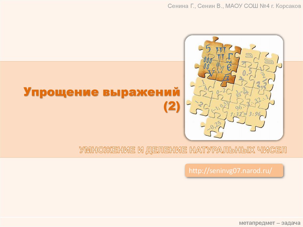 Сенина Г., Сенин В., МАОУ СОШ №4 г. КорсаковУпрощение выражений