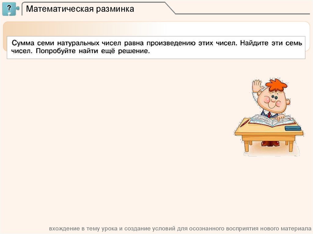 вхождение в тему урока и создание условий для осознанного восприятия нового материала