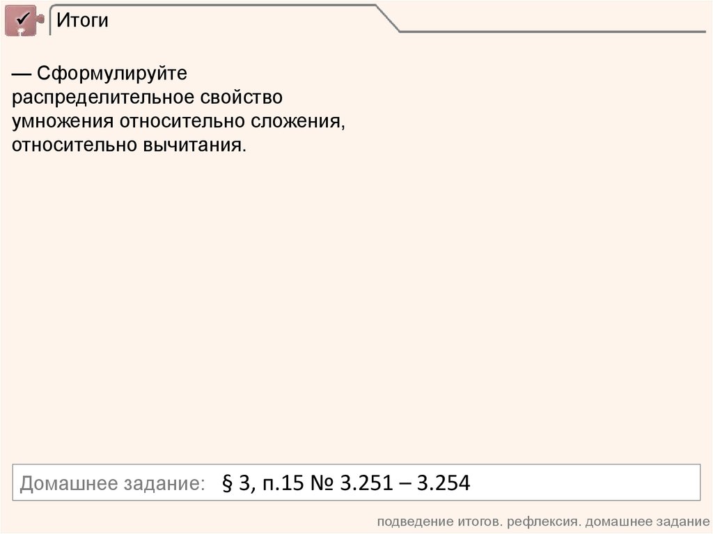 Домашнее задание: § 3, п.15 № 3.251 – 3.254