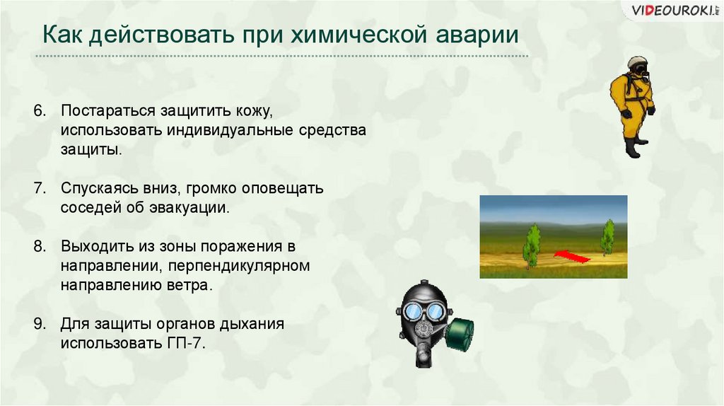 Как действовать при химической аварии10. При отсутствии возможности покинуть