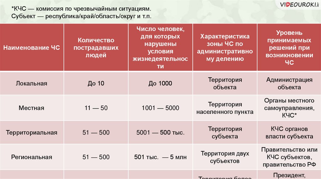 *КЧС — комиссия по чрезвычайным ситуациям.Субъект — республика/край/область/округ и т.п.