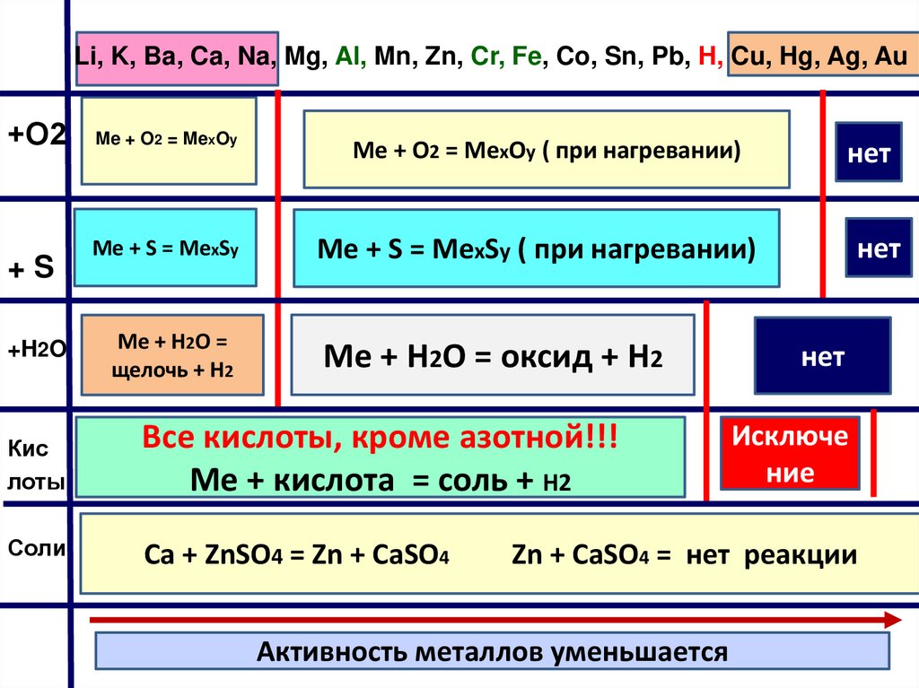 Me + кислота = соль + Н2