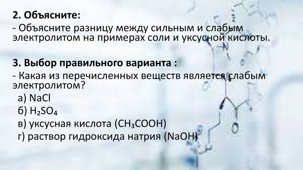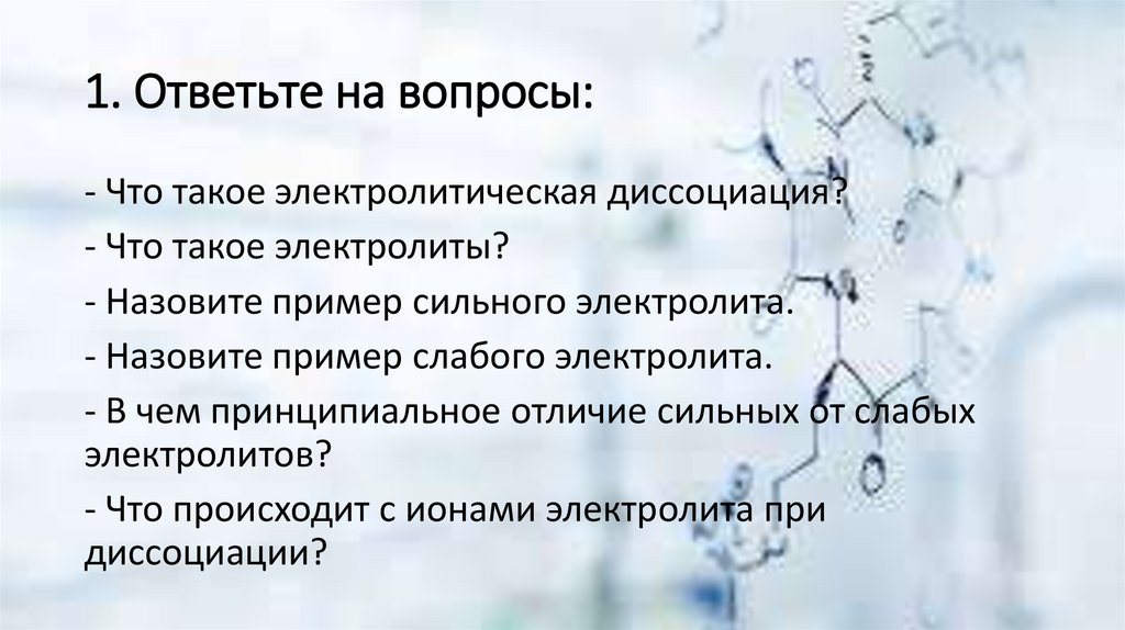 1. Ответьте на вопросы:- Что такое электролитическая диссоциация?