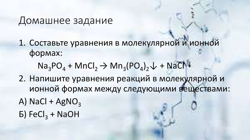 Домашнее задание1. Составьте уравнения в молекулярной и ионной