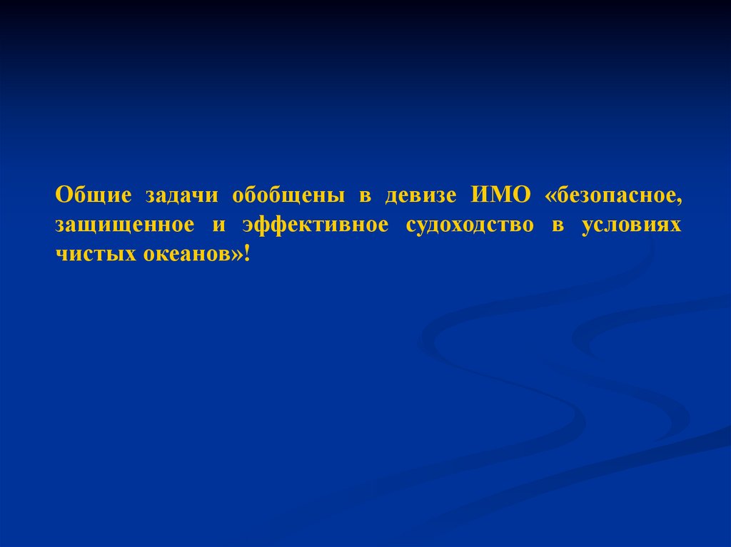 Общие задачи обобщены в девизе ИМО «безопасное,защищенное и эффективное судоходство в условиях