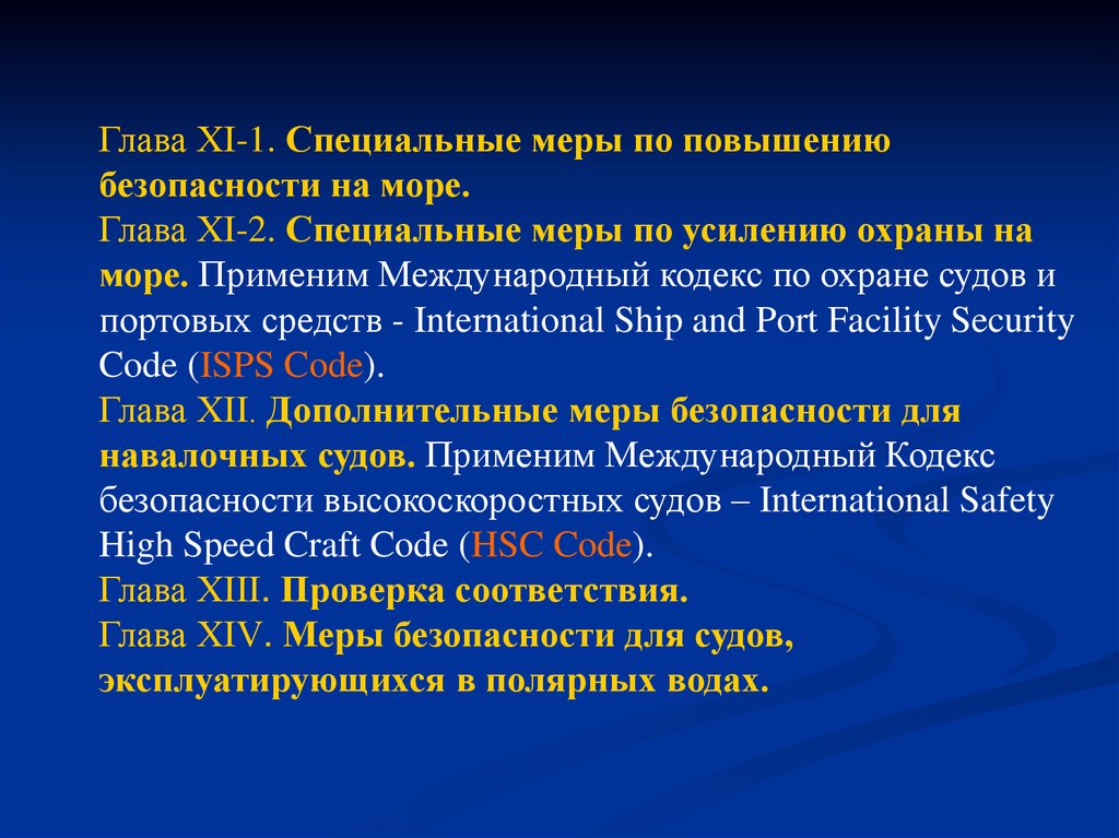 Глава XI-1. Специальные меры по повышениюбезопасности на море.