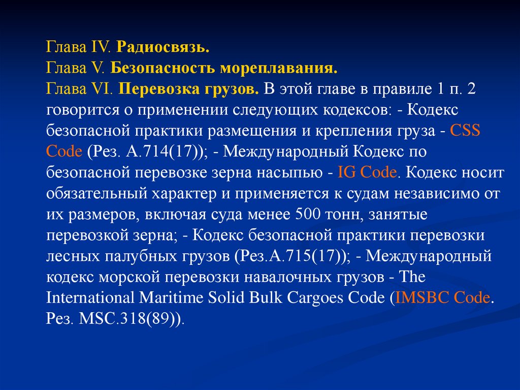 Глава IV. Радиосвязь.Глава V. Безопасность мореплавания.
