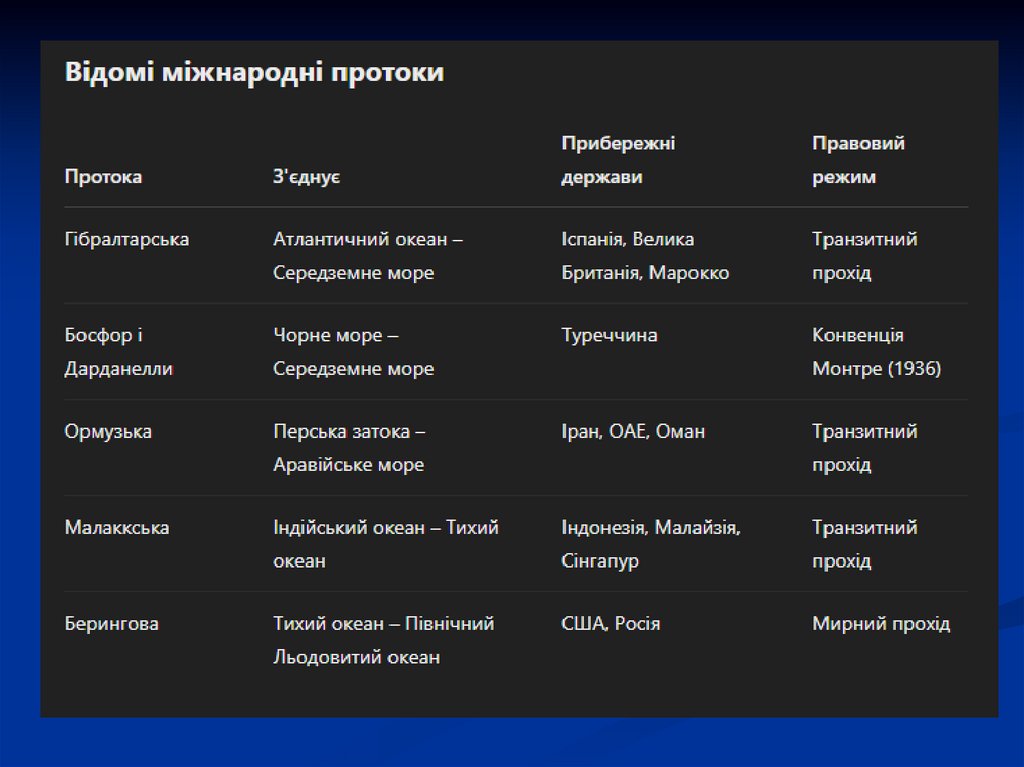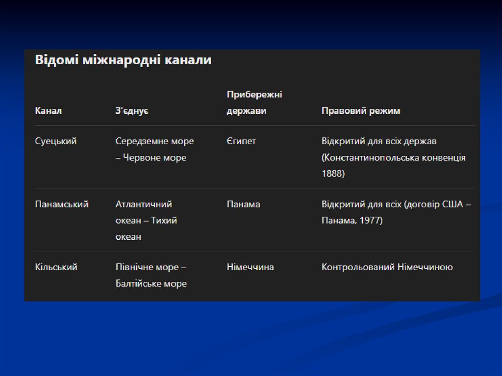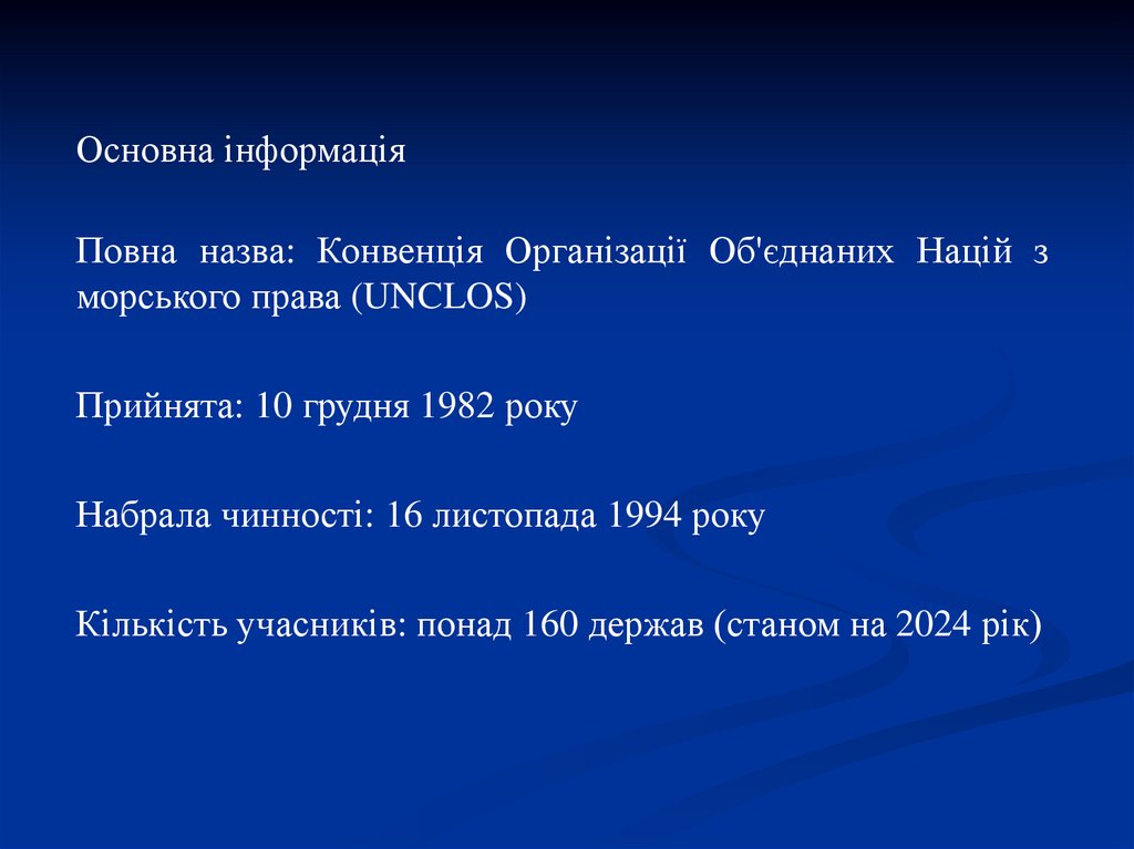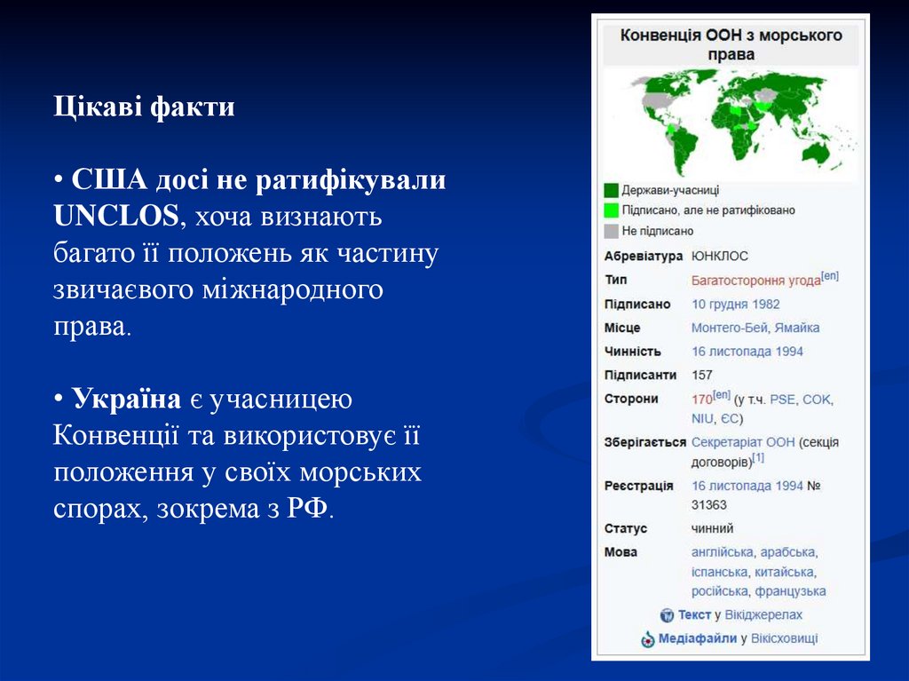 Основні положення Конвенції:1. Територіальне море — до 12 морських миль від узбережжя;