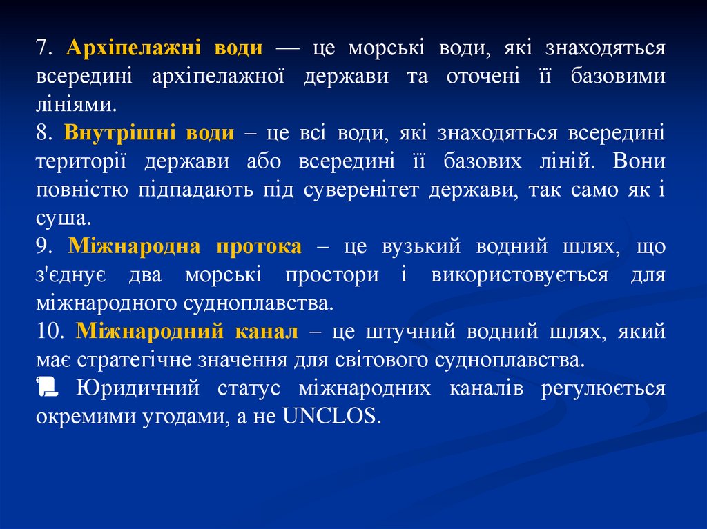 7. Архіпелажні води — це морські води, які знаходятьсявсередині архіпелажної держави та оточені її базовими