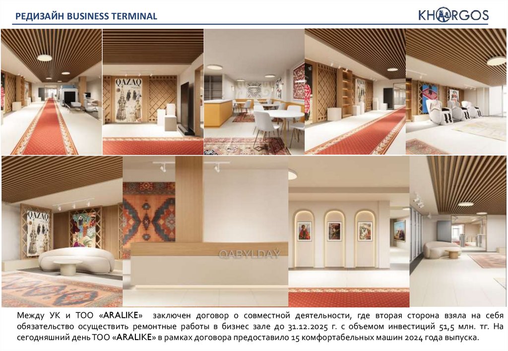 обязательство осуществить ремонтные работы в бизнес зале до 31.12.2025 г. с объемом инвестиций 51,5 млн. тг. На