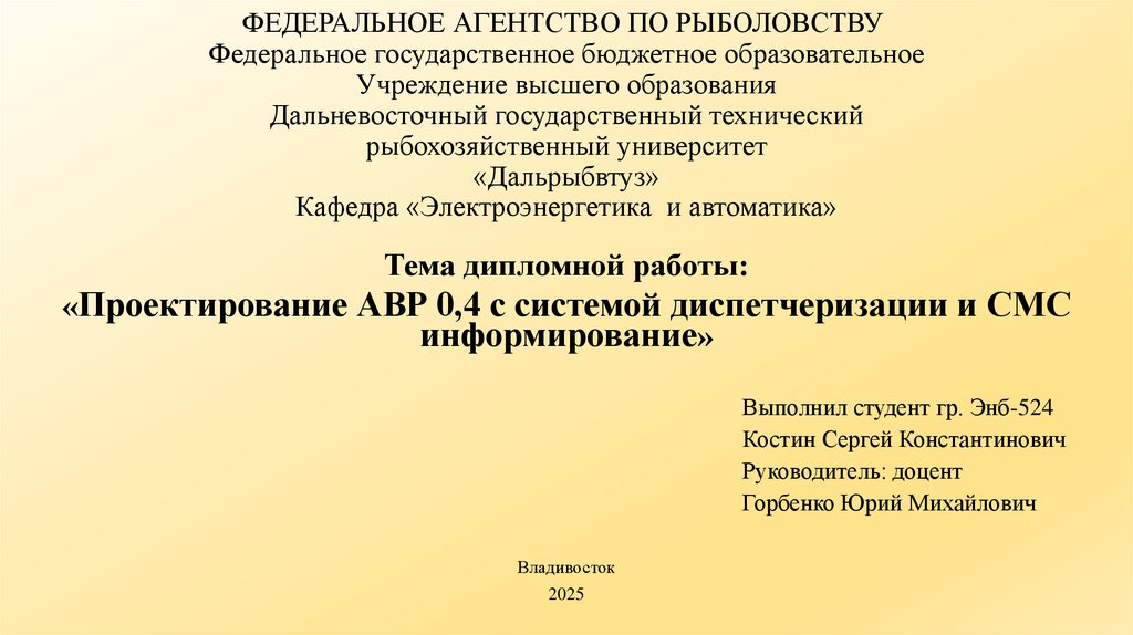 1. ФЕДЕРАЛЬНОЕ АГЕНТСТВО ПО РЫБОЛОВСТВУ Федеральное государственное бюджетное образовательное Учреждение высшего образования