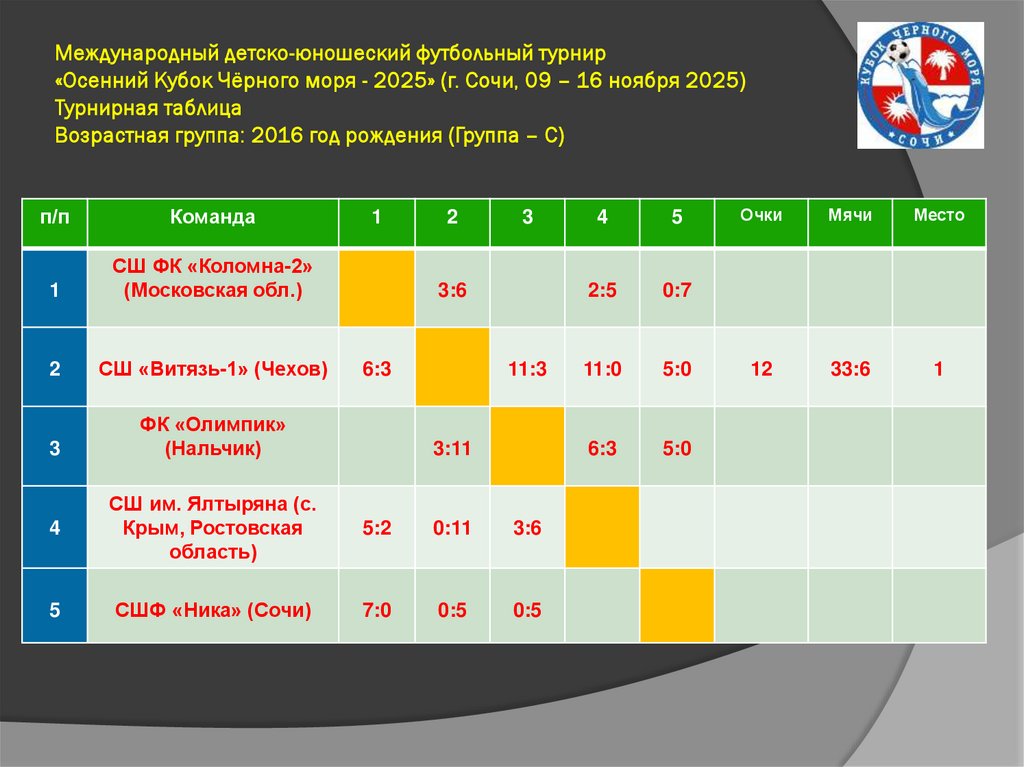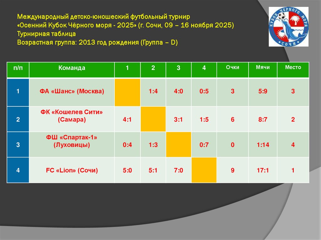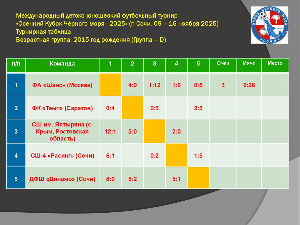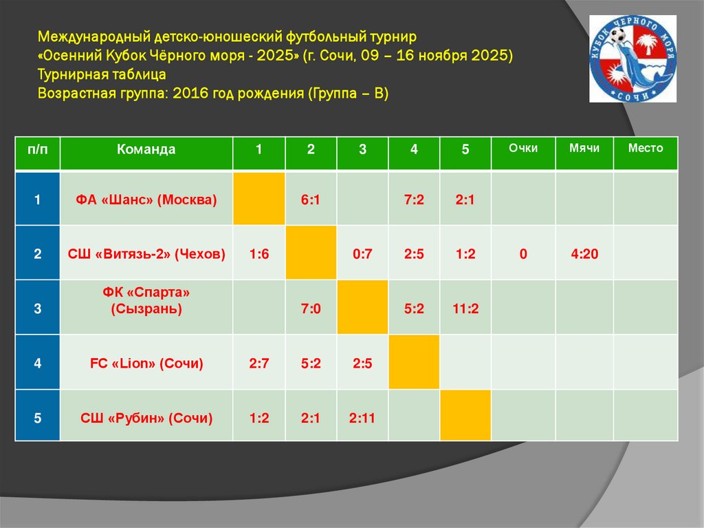 Международный детско-юношеский футбольный турнир«Осенний Кубок Чёрного моря - 2025» (г. Сочи, 09 – 16 ноября 2025)