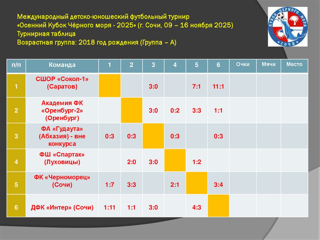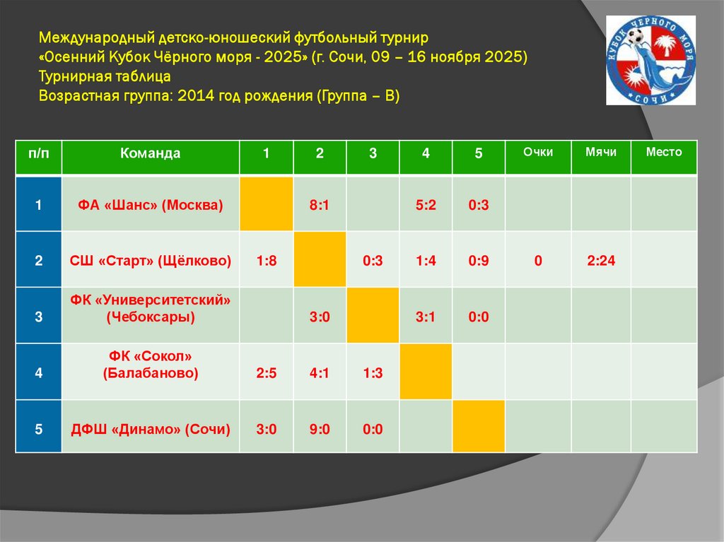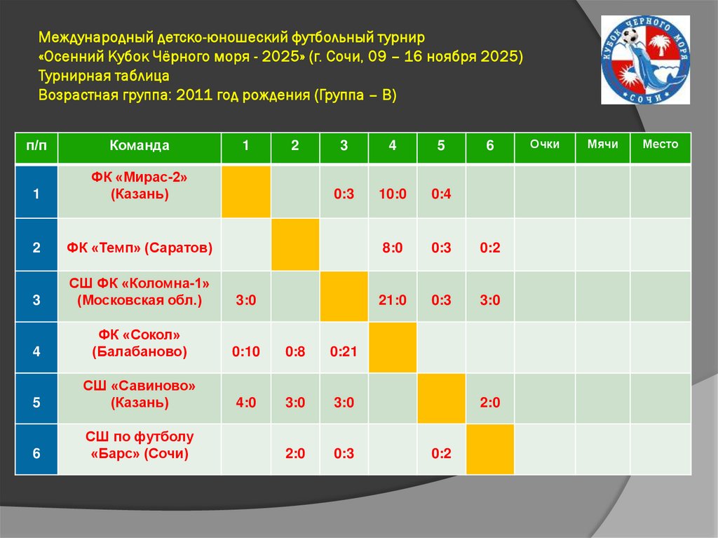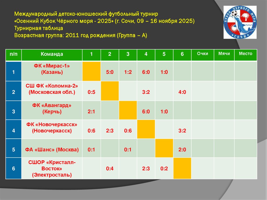 Международный детско-юношеский футбольный турнир«Осенний Кубок Чёрного моря - 2025» (г. Сочи, 09 – 16 ноября 2025)