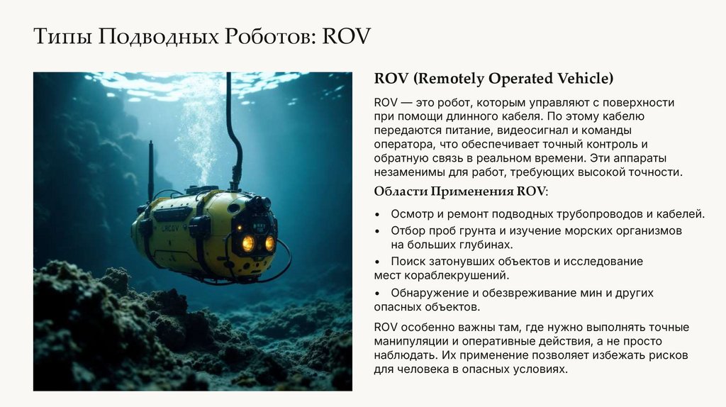 Типы Подводных Роботов: ROVROV (Remotely Operated Vehicle)