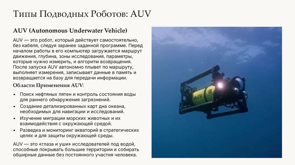 Типы Подводных Роботов: AUVAUV (Autonomous Underwater Vehicle)