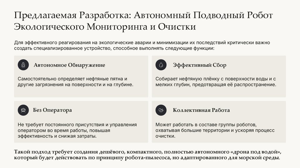 Предлагаемая Разработка: Автономный Подводный РоботЭкологического Мониторинга и Очистки