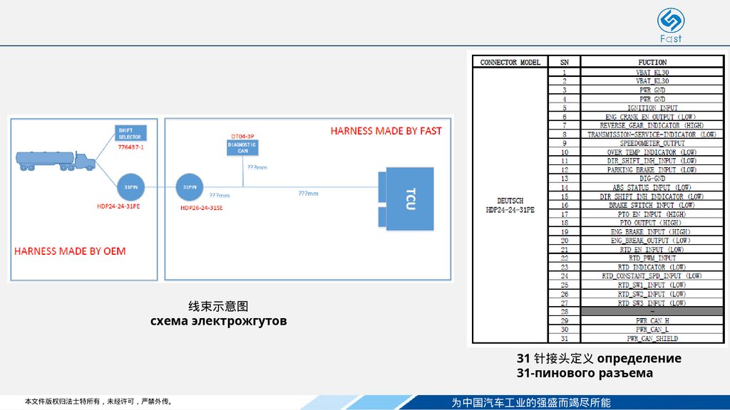 1 和整车对插接头为一个圆形 31 针德驰接头 31 针接头定义见附图。 1 шт