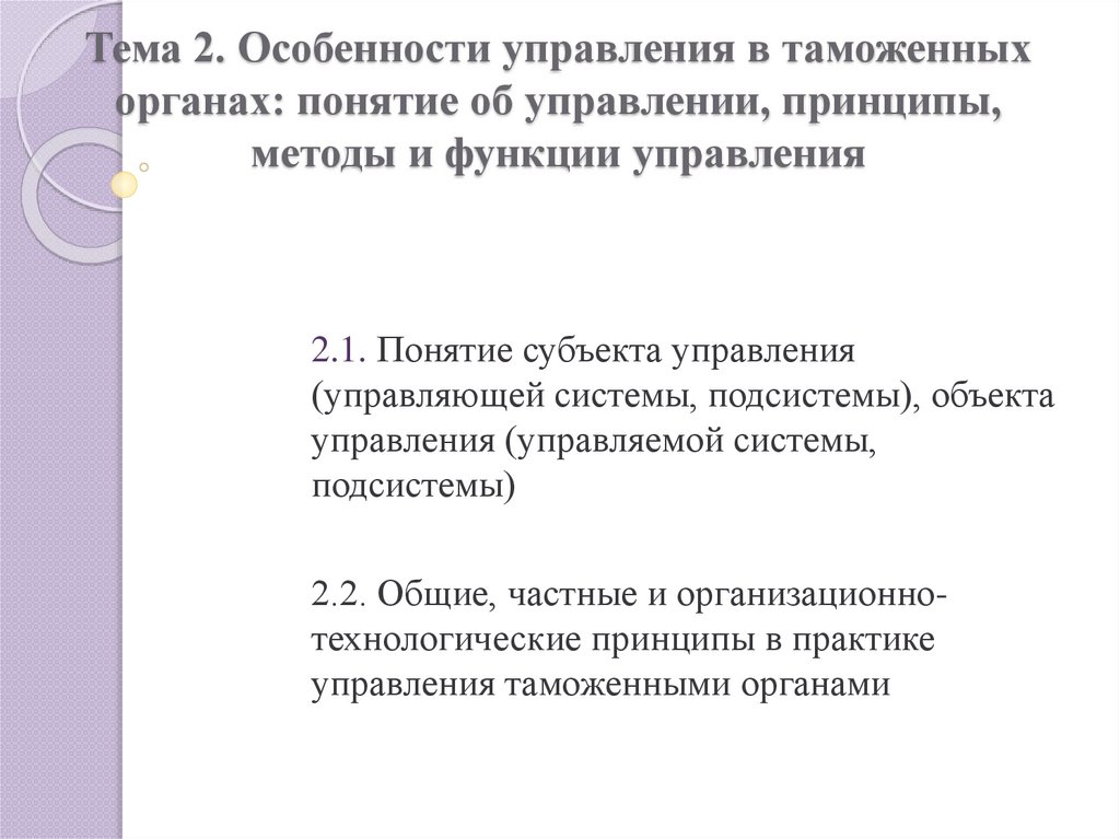 1. Тема 2. Особенности управления в таможенных органах: понятие об управлении, принципы, методы и функции управления