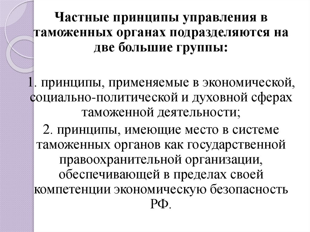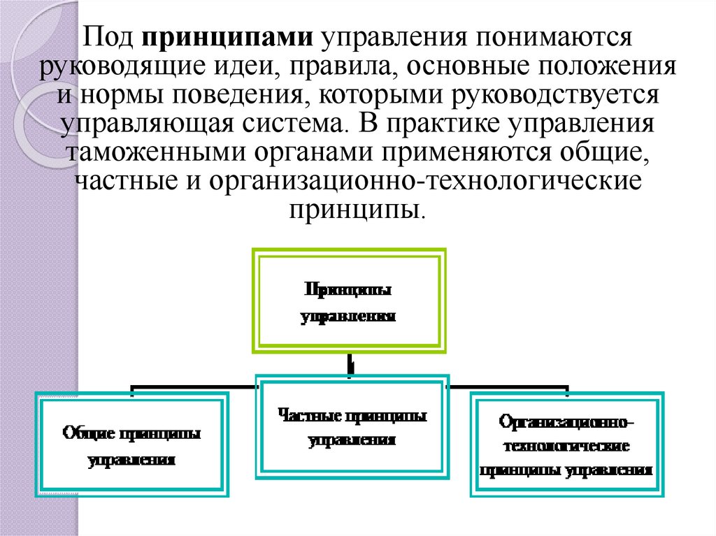 11. 2.2. Общие, частные и организационно-технологические принципы в практике управления таможенными органами