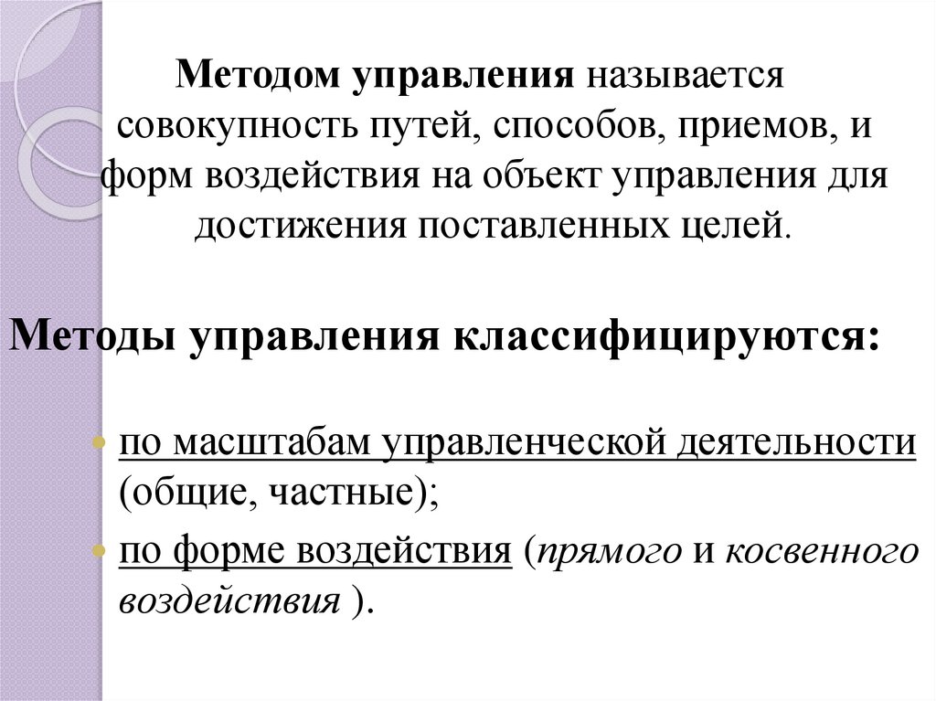 Методом управления называетсясовокупность путей, способов, приемов, и