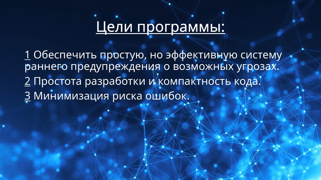 Цели программы:1 Обеспечить простую, но эффективную систему