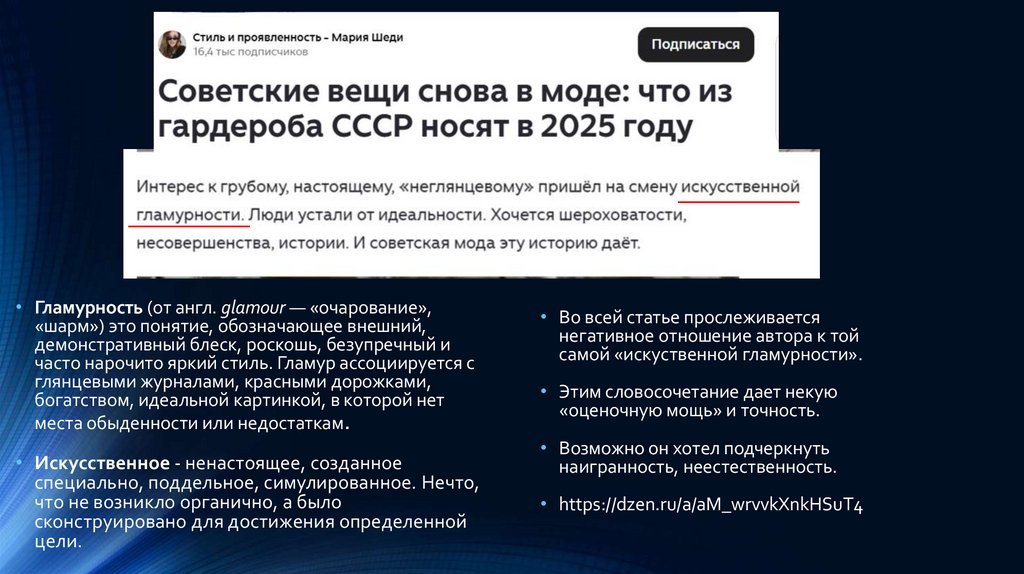 часто нарочито яркий стиль. Гламур ассоциируется с