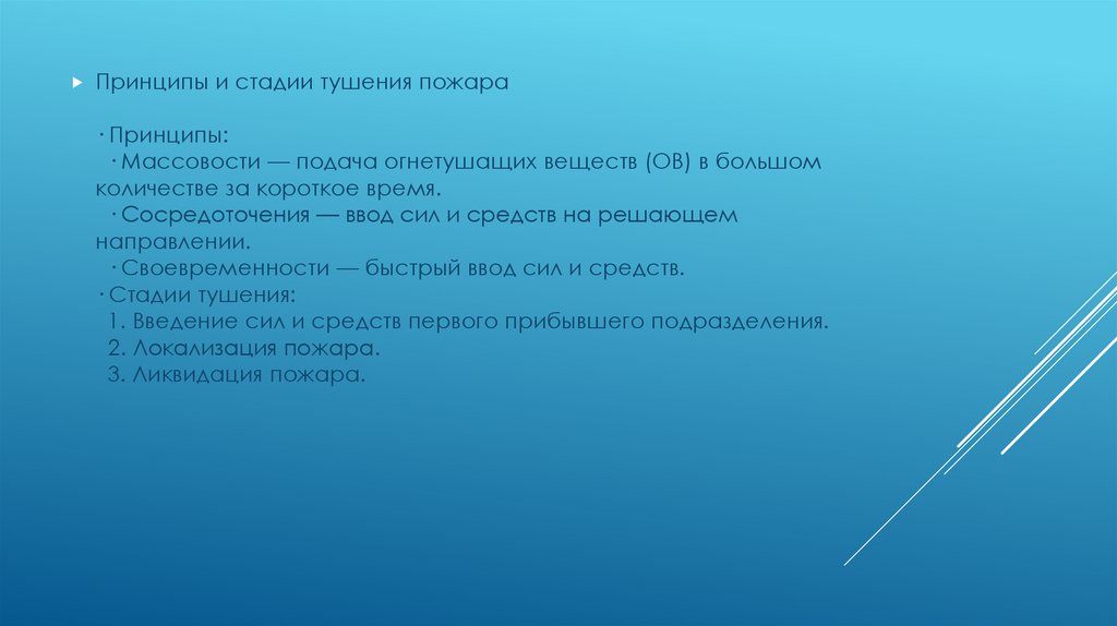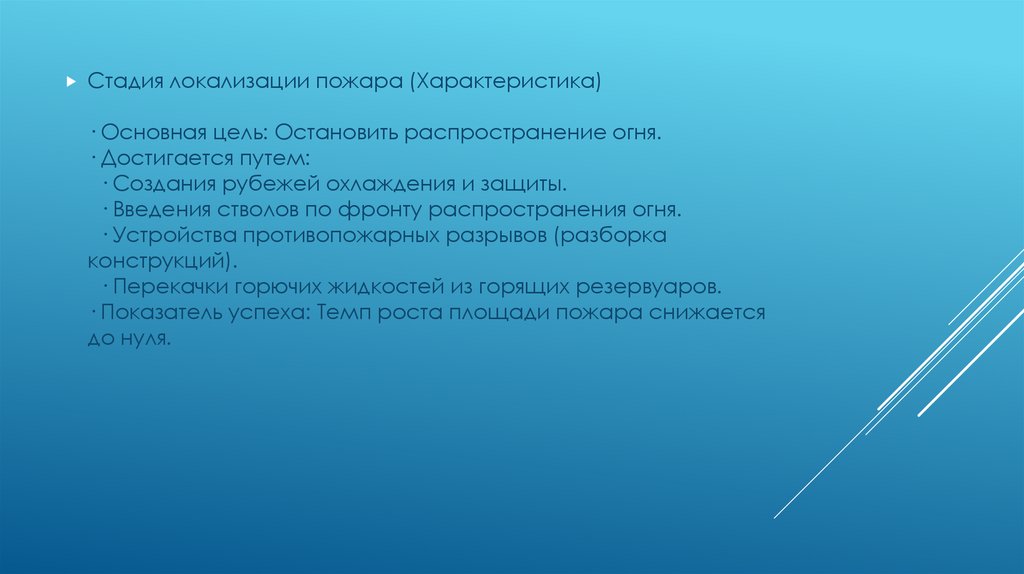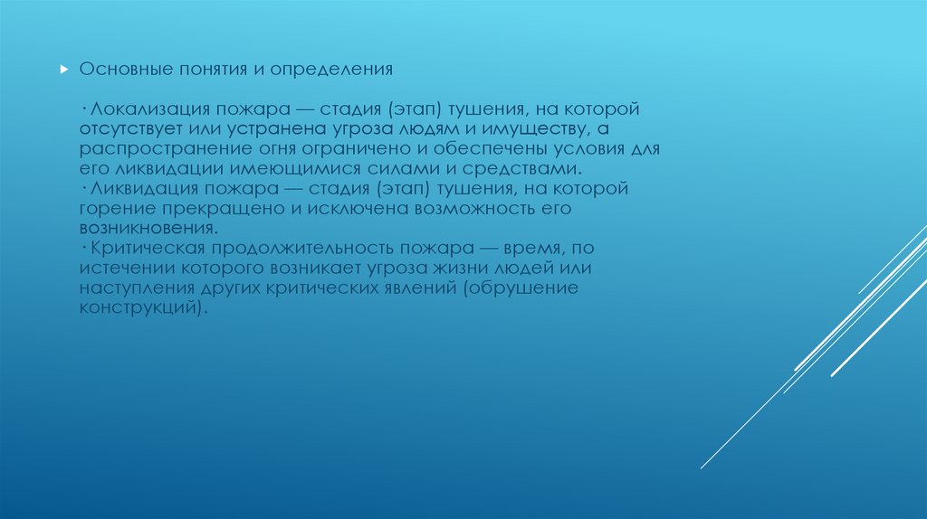 Основные понятия и определения· Локализация пожара — стадия (этап) тушения, на которой