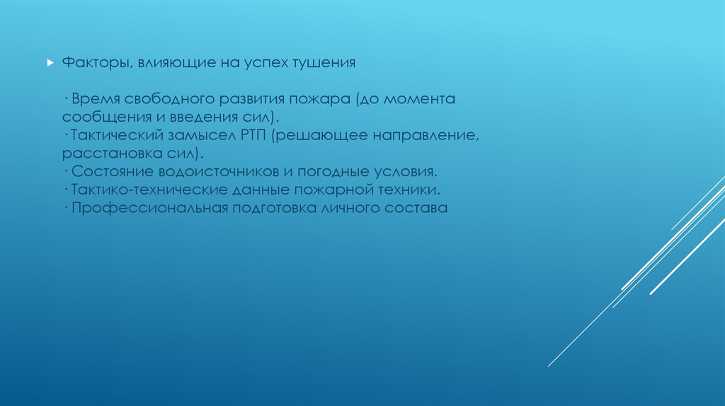 Факторы, влияющие на успех тушения· Время свободного развития пожара (до момента