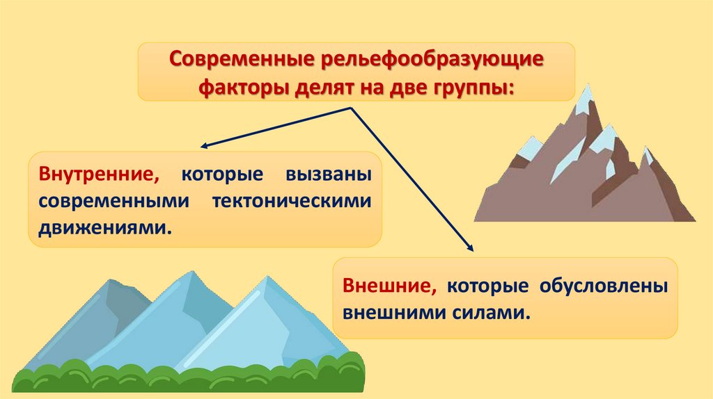 Современные рельефообразующиефакторы делят на две группы:
